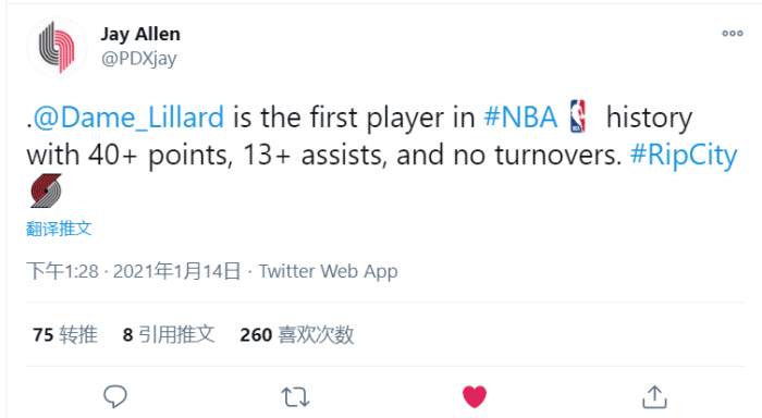 另外,利拉德则是NBA历史首位单场送出至少40分13助攻且0失误的球员!最让人意外的是,这是麦科勒姆和利拉德联手以来首次在同场比赛中送出至少两位数的助攻!