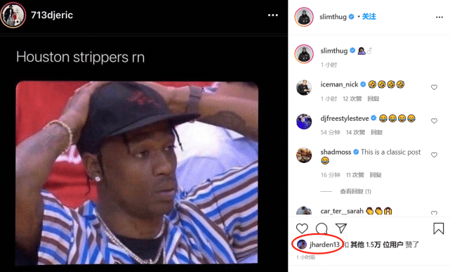 哈登被交易后首度现身社媒!点赞动态太喜感:休斯顿的夜店心态崩了