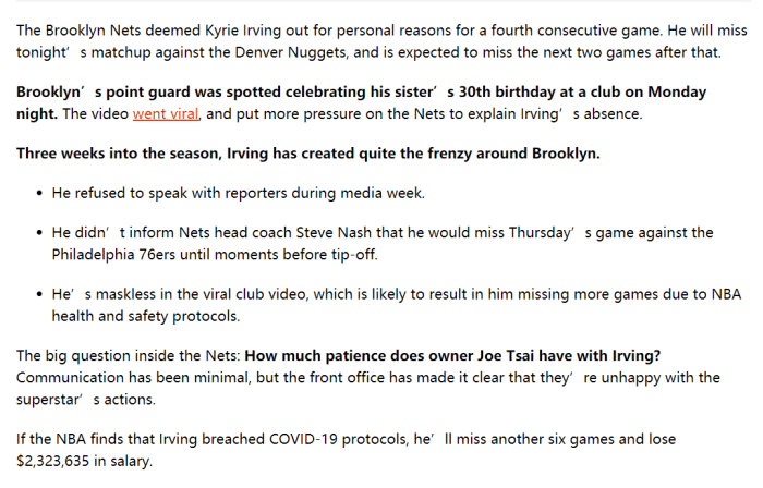 篮网三巨头恐散伙!曝蔡老板对欧文失去耐心,阵容畸形急需再交易