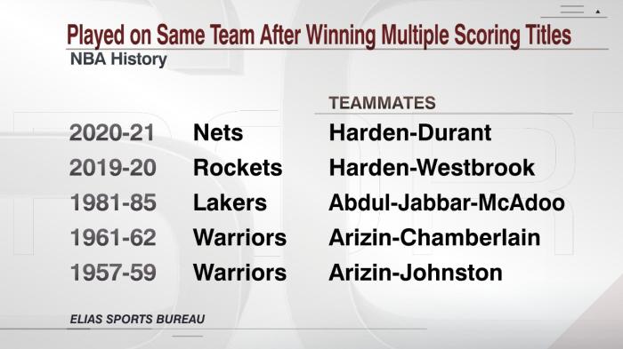 历史首对!哈登杜兰特创历史,11年7夺得分王,利拉德:篮网火力十足