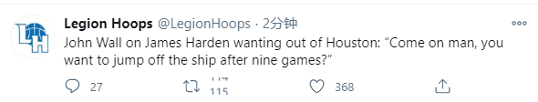 随后沃尔也接受采访,他表示:还有很多场比赛要打,我们目前只打了9场球;加油,兄弟,才打9场比赛你就要离开球队吗?还有很多比赛要打。会出现一些事情让我们分心,但我们中的大部分人都想赢下比赛,当做了很多努力但有人不买账的时候,这就是吃力不讨好,太难了。