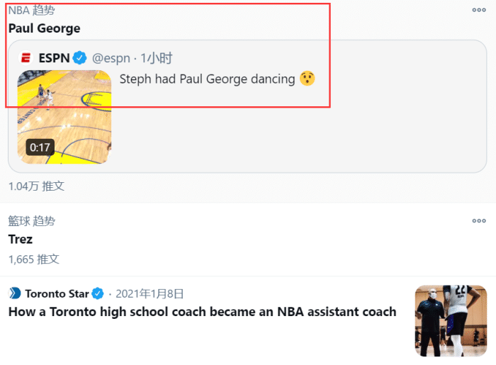 但意外的是,在推特热搜榜第一位的却并不是库里,而是快船球星乔治!其实泡椒这场比赛也打得足够出色,尤其上半场三分4中4,全场则是13中9砍下25分7助攻,两项数据也都是快船队内最高。不过在比赛最后阶段,乔治连续被维金斯和库里投进三分,再次成为勇士赢球的背景帝!尤其是防守库里这一回合,泡椒被萌神连续晃动惨遭戏耍!