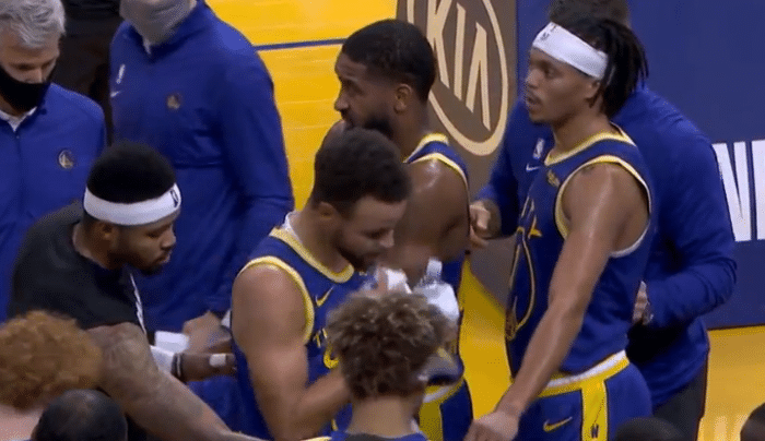 第四节的比赛开始后,科尔没有上维金斯,没有上乌布雷,勇士延续着自己第三节的疯狂进攻,达米恩-李先是抢到进攻篮板上篮打中,随后达米恩-李三分投射再中,帕斯卡尔三分也有,贝兹莫尔三分命中后,勇士将领先优势扩大到了6分,从第三节最后6分钟,到第四节的开局的4分钟时间里,勇士疯狂轰出了一波34:6的小高潮。