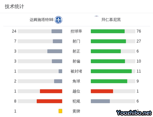 全场比赛结束,最终拜仁5-2达姆施塔特。