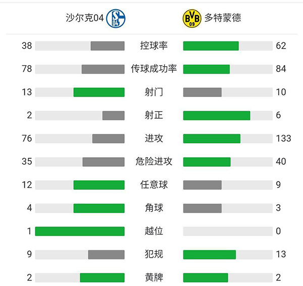 全场比赛结束,沙尔克0-4多特蒙德。