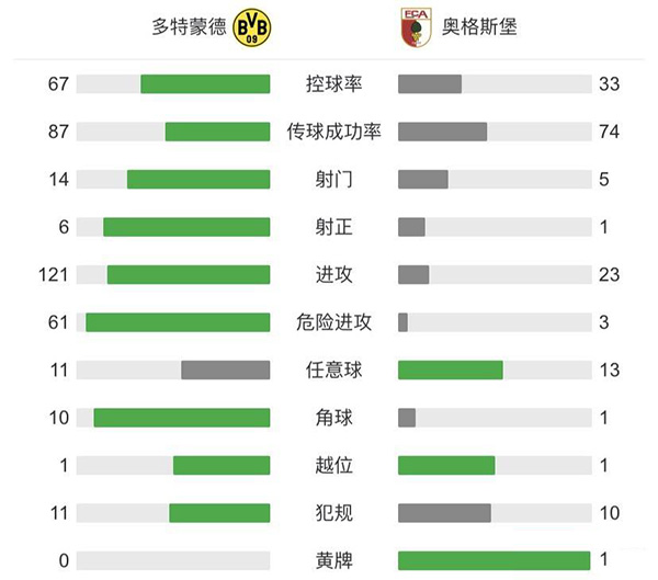 3分钟补时后全场比赛结束,最终多特3-1逆转奥格斯堡。