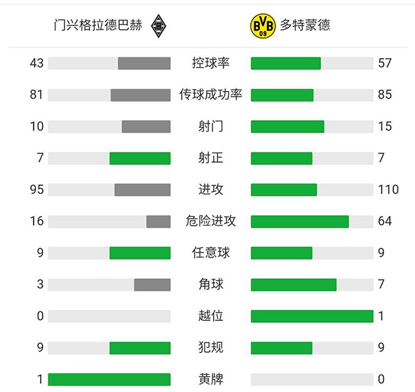 第10分钟,门兴第1球!埃尔维迪!前场右侧任意球霍夫曼开出,多特城防集体短路,埃尔维迪冲顶破门!门兴1-0多特。