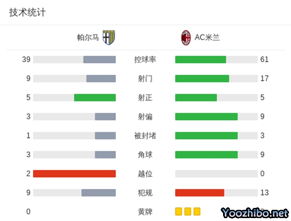 米兰1-2帕尔马 米兰后防全场被爆右路成对手走廊