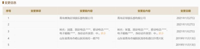 24直播网1月28日讯 据国家企业信息公示系统显示,青岛黄海足球俱乐部已更名为青岛足球俱乐部。
