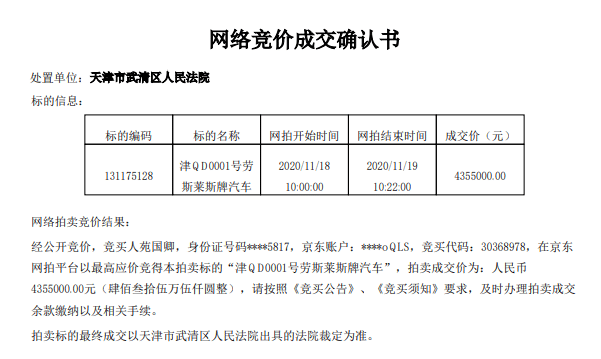 前中超老板的豪车被拍卖!折价数倍后超400万成交,车牌太抢眼