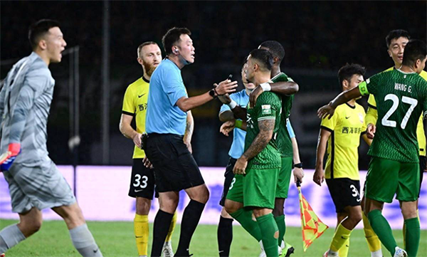 在此前中超第22轮北京国安客战青岛西海岸的比赛,李可在第85分钟失去理智后,上手锁喉赵宏略,险些引发两队球员冲突,主裁向李可出示红牌将他直接罚下,向嘴里骂骂咧咧的赵宏略出示黄牌警告。