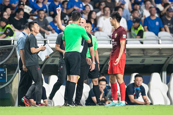 那场比赛,马宁狂掏8黄1红,其中海港中卫蒋光太还在完场后,对他鼓掌嘲讽吃到黄牌,但在足协评议组看来,马宁非常出色地完成了本场执法工作,并没有因为争议判罚影响了比赛的胜负。