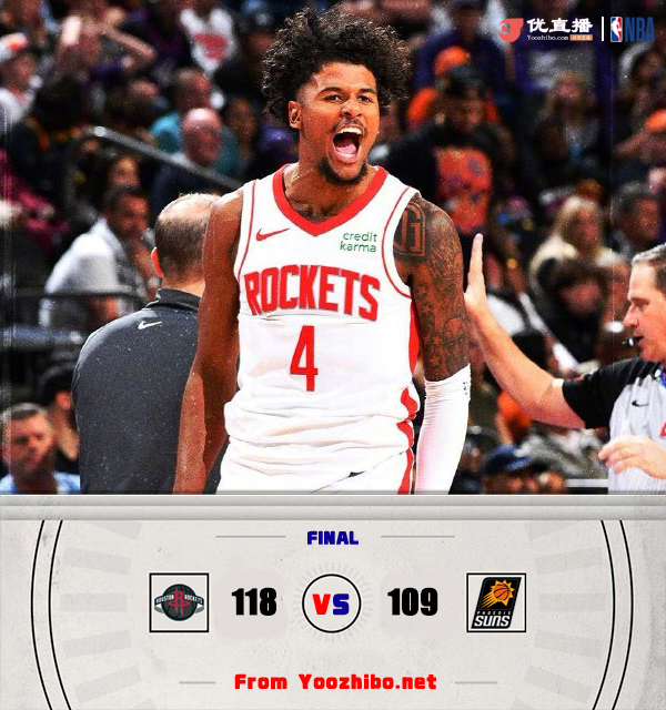 24直播网3月3日讯 NBA常规赛太阳主场迎战火箭,太阳目前排在西部第五,最近取得2连胜,火箭则仅排在西部第十二,最近遭遇3连败,本场比赛比尔复出先发登场。比赛开始后没多久杰伦-格林和范弗里特就展现出火热手感,在他们带领下火箭首节就建立起19分优势,太阳外线手感冰凉,第二节火箭的轮换阵容打得不好一度被太阳追到只差6分,杰伦-格林回来后帮助火箭稳住阵脚。下半场两队大打对攻战,场上分差一直在10分左右徘徊,比尔和杰伦-格林发生冲突吃到2次技术犯规被驱逐,最后一节太阳多次迫近比分但关键时刻火箭总能及时回应,太阳未能完成翻盘,临近比赛结束前布克也崴脚返回更衣室,最终火箭118-109力克太阳结束3连败。