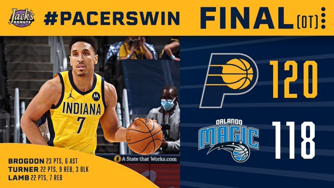 步行者(9-6):布罗格登23分3篮板6助攻,萨博尼斯18分11篮板9助攻5断,特纳22分9篮板3帽,麦克德莫特13分6篮板4助攻,贾斯丁-霍勒迪9分4篮板,麦康纳6分6助攻3篮板3断,兰姆22分7篮板1助攻1断,阿隆-霍勒迪5分,萨姆纳2分。