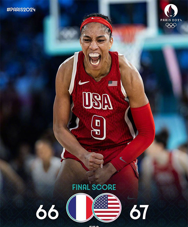 24直播网讯北京时间8月11日讯 奥运女篮金牌赛,美国队今日对阵东道主法国队。比赛上来,美国队连拿四分取得领先,不过法国队迅速用一波5-0的小高潮实现反超,但之后她们的进攻表现糟糕,单节只拿到9分,美国队则是拿到15分,次节美国队的命中率也是出现下滑,法国队抓住机会在半场结束时追至25-25平;下半场回来,在前三分多钟的时间里美国队一分未得,法国队打出一波10-0的小高潮将分差拉开到了两位数,紧要关头美国队连拿八分追上比分,之后两队一直保持拉锯,比赛直到最后才分出胜负,关键时刻法国队连续两个三不沾,库珀两罚全中最终美国队险胜法国队拿下金牌,也是实现了奥运会八连冠。