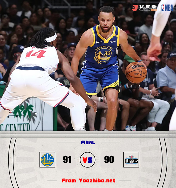 24直播网10月6日讯 NBA季前赛,勇士对阵快船,库里和哈登均先发出战。开场后哈登和祖巴茨多次形成连线帮助快船取得领先,随后勇士依靠提速反击回敬一波9-0攻势,哈登连续制造三分犯规和打进3+1帮助快船再度领先,勇士依旧靠着反击将比分咬住。第二节快船依旧失误较多,勇士趁机反超比分,哈登站出来连续制造罚球为快船稳住阵脚,穆迪两记三分帮勇士领先结束上半场。下半场回来两队替补阵容都打得比较乱,失误频频,此后双方打得相当胶着,最后时刻沃特斯完美执行战术完成三分压哨绝杀,勇士91-90险胜快船。