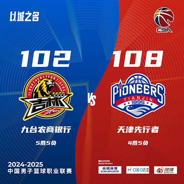 24直播网11月3日讯 CBA常规赛,吉林主场迎战天津,吉林目前5胜4负,而天津3连败后3胜5负。比赛开始,琼斯接连送出助攻后接连攻筐取分,带领吉林打出20-6梦幻开局,林庭谦一攻一传帮助天津回应8-0止血,首节吉林领先7分,次节吉林重新拉开双位数领先,但郑昊燃接连三分再次止血,琼斯和姜伟泽也能三分强势回应,双方展开拉锯战,半场吉林领先到11分。下半场,吉林进攻端有些断电,天津外线多点开花连中5记三分一度反超比分,琼斯站出来里突外投连砍11分强势回应,三节结束双方打成78平,末节琼斯继续撑起球队进攻,但林庭谦有攻有传联手大卫-詹姆斯再次反超回来,比赛进入白热化,李宗霖关键三分,最终天津108-102力克吉林。
