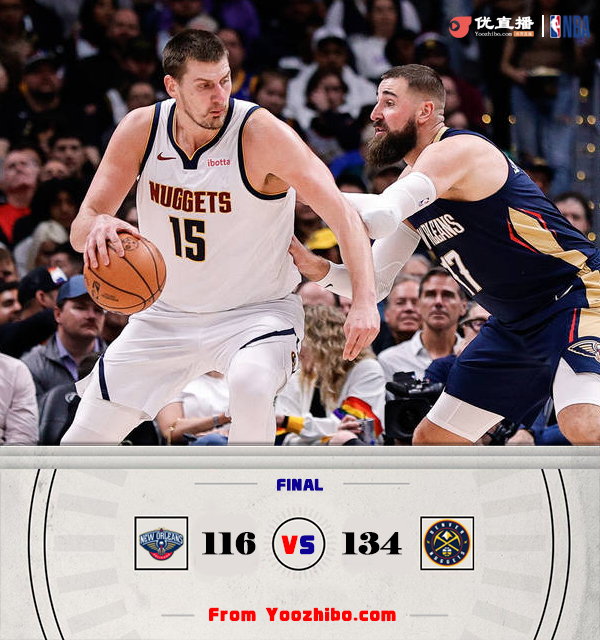 24直播网11月7日讯 NBA常规赛迎来焦点对话,鹈鹕客场挑战掘金,卫冕冠军掘金输给森林狼后迎来两连胜,目前6胜1负领跑西部,鹈鹕上场不敌老鹰,4胜2负排在西部第四,此役掘金后卫穆雷右腿筋拉伤缺阵。首节开打后双方短暂试探,小波特找到手感连续取分,约基奇肆虐内线单节揽下12分7板,英格拉姆及时回应稳住局势,马特-瑞安连中三分续上火力,首节结束时鹈鹕领先2分,次节回来,约基奇外线连续发炮,但乔丹-霍金斯突然发力单节贡献13分,鹈鹕连续打出得分高潮扩大优势,半场战罢,鹈鹕已经领先12分。易边再战后鹈鹕进攻出现停滞,约基奇率队一波10-0一举反超,三节结束后掘金反超7分,末节上来,两队你来我往火热对攻,斯特劳瑟手感炸裂单节独得12分,掘金稳扎稳打牢牢占优,鹈鹕追分无望,最终掘金力克对手迎来三连胜。