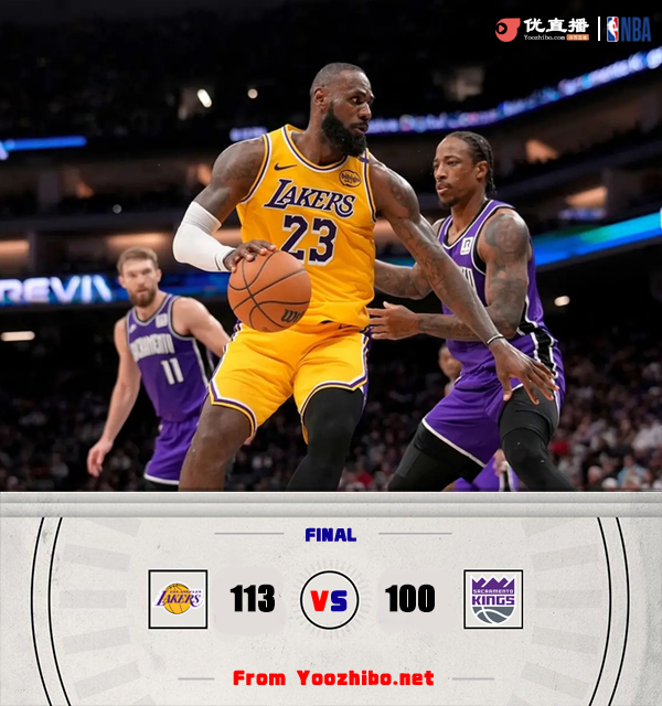 24直播网讯 北京时间12月20日讯 NBA常规赛继续开打,国王今日坐镇主场迎战湖人,这是两支球队3天2战首场对决。首节之争湖人以詹姆斯连拿5分为主送出15-2的攻势反客为主抢占先机,不过他们没能把完美的状态延续下去;国王开局被对手三板斧打懵后及时止住颓势,以德罗赞为首的他们连续拿分止血,随后第二节国王彻底起势轰出26-12的攻势一举反超比,不过末段湖人及时回暖,浓眉哥的关键2+1和文森特的三分带领湖人回暖并取得4分领先进入下半场,与此同时詹姆斯在上半场完成了追平得分上双纪录和独占出场时间历史第一的两项壮举。休息归来双方持续拉锯,湖人虽然大部分时间占据上风但优势并不大,不过末节决胜时刻以里夫斯的关键三分为主,湖人送出12-2的攻势拉开两位数奠定胜局。最终,湖人击败国王拿下比赛。