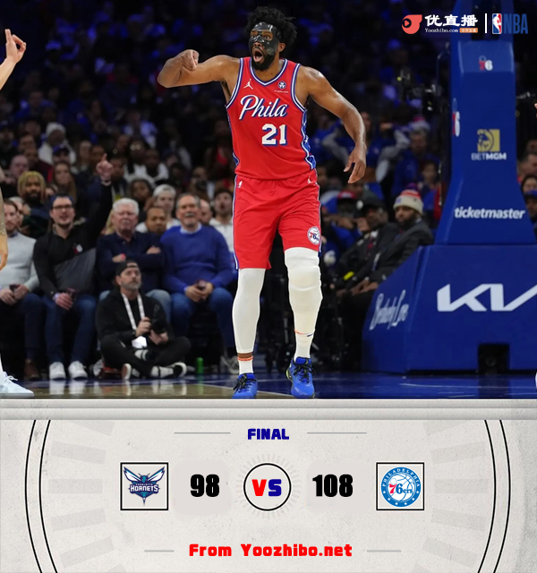 24直播网讯 北京时间12月21日讯 NBA常规赛激战正酣,76人主场迎战黄蜂,此前鼻窦骨折的恩比德带着面具复出,拉梅洛-鲍尔因左小腿伤势缺阵,76人目前8胜16负仅位列东部倒数第四,黄蜂遭遇3连败后战绩来到7胜20负,排在东部倒数第三。此役一上来马克西早早开张连中三分,连投带罚单节砍下15分,恩比德和乌布雷续上火力,黄蜂进攻滞涩难以招架,76人连续轰出得分高潮拉开比分,首节结束时76人确立18分优势,次节回来,76人进攻火力放缓,但黄蜂依然无法打出追分攻击波,马丁延续手感率队稍稍缩小分差,半场战罢,76人依然领先12分。易边再战后两队你来我往拉开对攻,恩比德持续杀伤罚球涨分,乌布雷压哨出手命中,三节结束后76人保持14分优势,末节上来,黄蜂一度将分差追至4分,但恩比德连续取分率队守住胜果,最终76人108-98击败黄蜂送对手4连败。