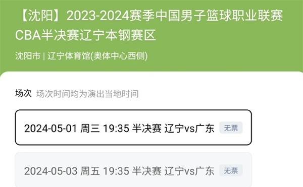 来源:24直播网04-26 16:5124直播网讯 4月26日,CBA季后赛半决赛的辽粤大战球票开售,辽篮常规赛战绩更好,所以在系列赛占据主场优势,前两场比赛都是在辽宁男篮的主场进行。如今G1和G2的球票已经开售,短时间内从最低的280元到最贵的2580元,全部售罄。