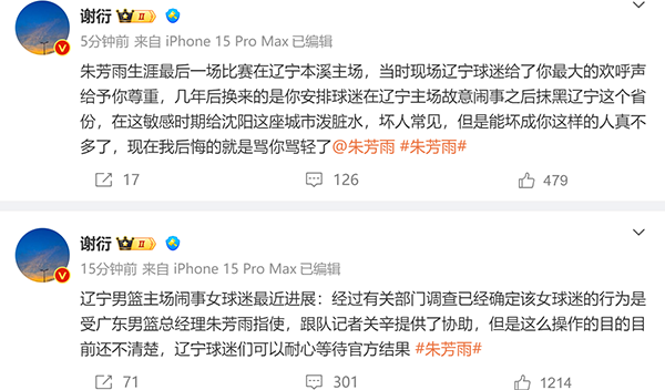 来源:24直播网05-06 13:2324直播网讯 CBA辽粤大战的关注度很高,期间一位女球迷在辽粤大战G2的比赛场边引发争议,称被殴打和辱骂等等。如今知名记者谢衍跟进报道,称这名闹事的女子是广东男篮的总经理朱芳雨指使的,还有随队记者协助。