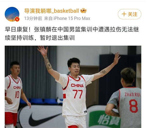 张镇麟集训期间遭遇拉伤无奈退出,期待其早日康复归来