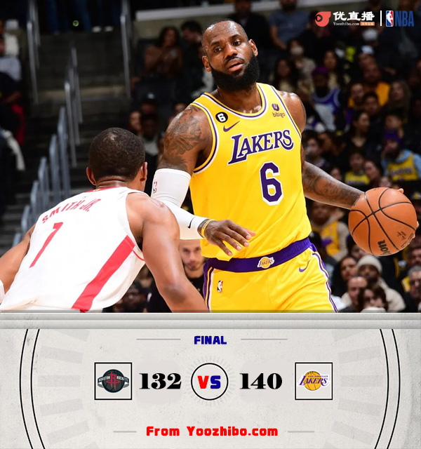 湖人140-132战胜火箭 詹姆斯48+8+9 威少24+5 申京33+15+6