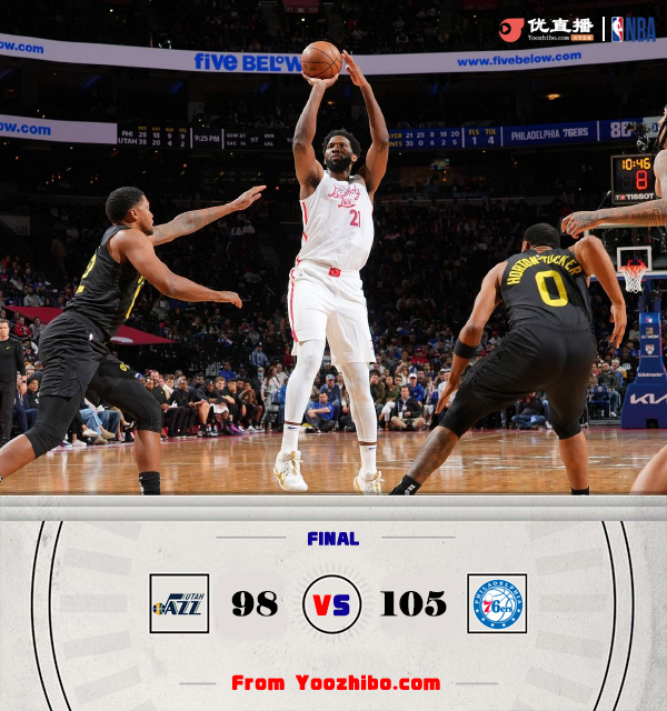 24直播网11月14日讯 76人今日坐镇主场迎来西部领头羊爵士的挑战,76人在上一场击败老鹰稳住此前4战3负的颓势,不过哈登因伤继续缺战;爵士方面上一场憾负奇才结束4连胜。上半场的对决爵士不负自己西区领头羊的名声在客场也能占据微弱优势,他们在首节一直保持微弱优势伺机反扑,次节中段爵士轰出13-2的攻势拿到上半场最大的14分领先,不过他们半场13罚5中的罚球命中率太糟糕错失彻底拉开比分的机会,而76人虽然外线手感拉跨,但以恩比德冲击篮下的优势为首送出17-5并将劣势缩小至6分进入下半场。下半场76人上来就是17-7的进攻高潮扭转局势,不过爵士也没有崩盘迅速追上比分,双方随后一路交替领先将悬念留到最后,恩比德末节狂轰26分外加5次封盖,全场砍下个人生涯新高的57分带领球队笑到最后。最终,76人主场力克爵士拿下比赛。