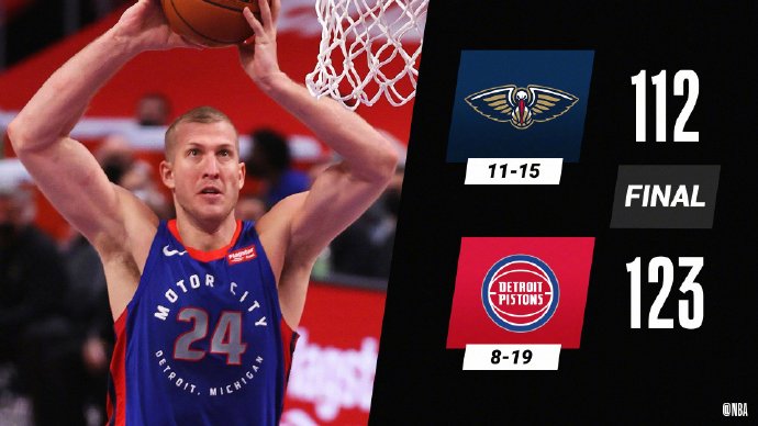 活塞(8-19):约什-杰克逊21分3篮板,普拉姆利17分10篮板10助攻,萨迪克-贝16分4篮板6助攻3抢断,格兰特15分2篮板4助攻,艾灵顿6分2助攻,赖特17分7篮板6助攻,米凯柳克18分2篮板3助攻,斯图尔特4分6篮板,丹尼斯-史密斯9分2篮板2助攻。