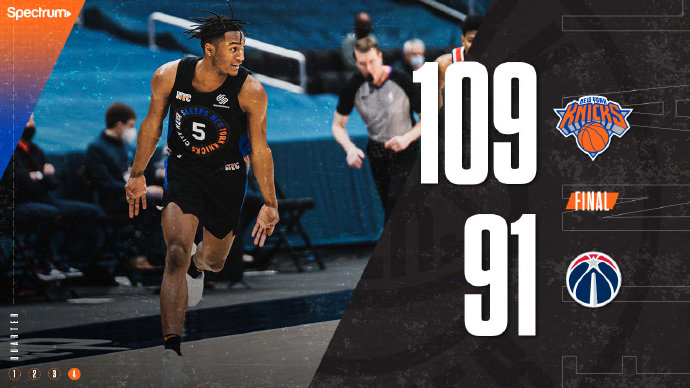 24直播网2月13日讯 NBA常规赛,奇才今日坐镇主场迎来尼克斯的挑战,奇才近期状态起伏较大上轮输球排名东部第14,而尼克斯则遭遇两连败排名东部第10。双方首节上来陷入短暂僵持后,尼克斯率先拉开分差,首节结束尼克斯领先7分,次节尼克斯一直保持两位数领先优势半场结束领先奇才11分。下半场上来奇才凭借外线多点开花不断缩小分差,但尼克斯依靠篮下统治力在三节尾声再度将分差拉大三节领先15分;末节尼克斯外线火力全开将分差扩大到20+,比赛提前失去悬念,最终尼克斯109-91大胜奇才终结连败。