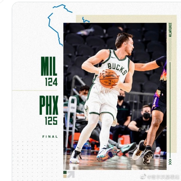 雄鹿:字母哥47分11板5助、米德尔顿18分5板11助、大洛10分6板、福布斯17分、迪文岑佐10分6板、波蒂斯12分9板