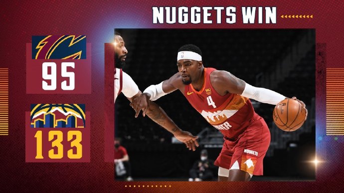 24直播网2月11日讯 NBA常规赛,骑士今日对阵掘金,骑士此前遭遇4连败排名跌至东部第11位,掘金遭遇3连败排名西部第8。比赛开局阶段,双方经过短暂僵持后掘金很快掌控局面,首节便确立了17分的领先优势,次节双方交替升分,但掘金凭借外线超高命中率扩大领先,半场结束时64-43领先21分。下半场回来掘金保持火热手感很快就确立了30分的领先优势,掘金前三节得分上百大比分领先爵士;末节比赛提前失去悬念,纳吉出场火力全开命中4记三分,最终掘金133-95大胜骑士终结3连败,骑士遭遇5连败。