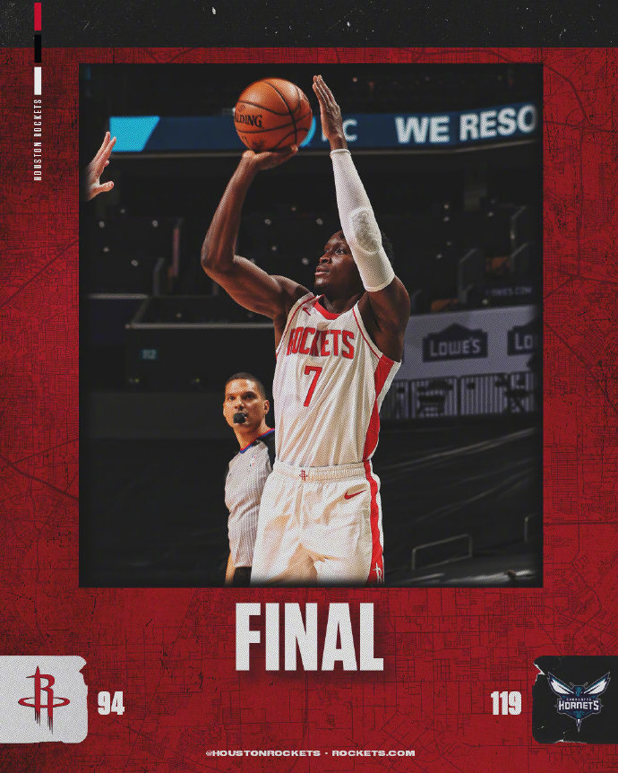 24直播网2月9日讯 火箭今日奔赴夏洛特客场挑战黄蜂,火箭这边除了受伤的伍德外,沃尔和戈登全都轮休缺阵。缺少多名核心的火箭在开局的对攻中虽然落入下风但表现顽强一直咬住比分,次节在麦克勒莫爆发单节砍下15分的带动下一度反超比分,不过黄蜂这边鲍尔同样有着出色发挥,他半场15分5助的表现帮助黄蜂及时稳住局势并带着4分领先进入下半场。第三节的火箭虽然继续落后但打的很顽强,节末也一度追平了比分,然而第四节初莫名的哑火直接导致溃败,他们开局前7分钟里仅得1分,而黄蜂抓住机会送出19-1的攻势一举拉开比分奠定胜局,火箭这一节仅得7分。最终,黄蜂主场轻取火箭拿下比赛。