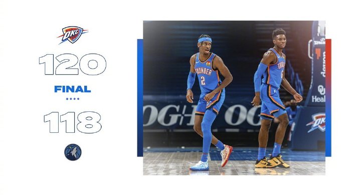 24直播网2月7日讯 NBA常规赛雷霆主场对阵森林狼,开场后雷霆迅速进入状态以10-0开局,此后两队进攻节奏飞快,亚历山大带领雷霆不断拉大分差,第一节雷霆领先19分。第二节回来两队仍旧是大打对攻战,森林狼毫不示弱连续对飚得分,上半场雷霆83-62领先森林狼。下半场回来风云突变,里德独得13分为森林狼吹响反击号角,雷霆进攻陷入困境,森林狼一路缩小分差并且在第四节完成反超,雷霆及时咬住比分并且在最后关头取得领先,里德绝平勾手不中,雷霆120-118力克森林狼。