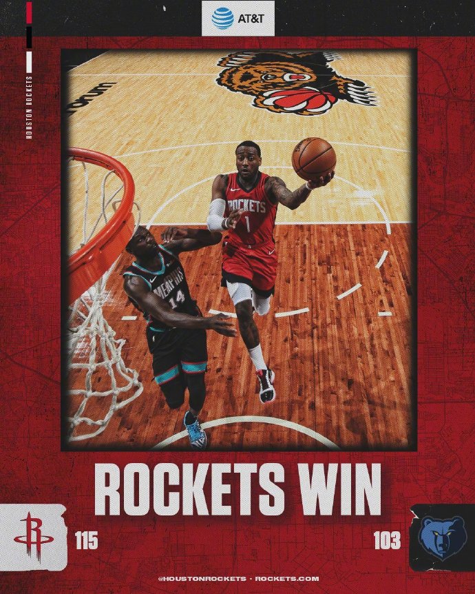 火箭(11-10):戈登20分5篮板2助攻,沃尔22分8助攻,泰特19分7篮板2助攻,伍德17分7篮板,豪斯13分2篮板5助攻3抢断,斯特林-布朗9分7篮板3助攻,考辛斯5分6篮板3助攻,塔克3分8篮板2助攻,麦克勒莫3分,库鲁茨4分。