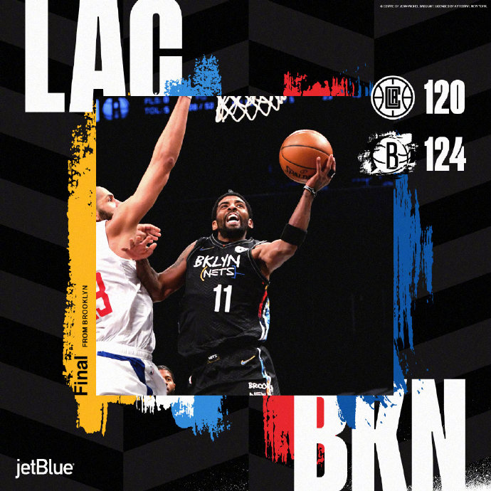 24直播网2月3日讯 NBA常规赛快船客场挑战篮网,快船3连胜后占据西部第一。开场快船顺风顺水早早取得10分领先,莱昂纳德和乔治两人轮番拿分,不过篮网三巨头轮流拿分咬住比分,第二节篮网内外开花缩小分差,雷吉和小莫里斯发挥出色,不过杜兰特和欧文也马上回敬攻势,上半场快船58-51领先1分。下半场回来欧文不断送上个人表现拿分,不过巴图姆外线手感火热,莱昂纳德也连连拿分,三节过后快船仍旧守住领先。但第四节欧文仍旧状态神勇帮助篮网一举反超比分,最后时刻两队罚球大战,篮网有惊无险地拿下胜利,最终篮网124-120逆转终结快船3连胜。