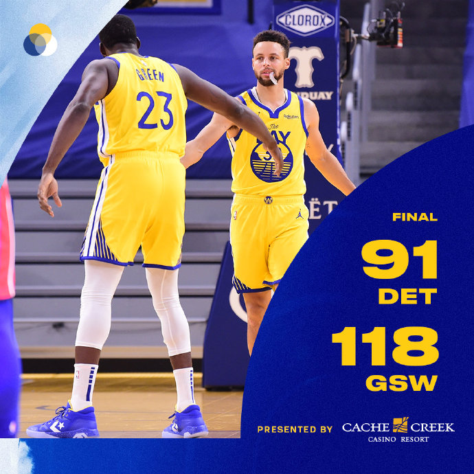 24直播网1月31日讯 勇士今日坐镇主场迎战活塞,首节比赛勇士三位核心库里、维金斯和乌布雷合力砍下23分,活塞则进攻断断续续完全找不到感觉,勇士首节便取得12分领先,次节活塞进攻端虽然有所回暖但勇士手感更热,节中勇士一波14-3的攻势一度取得23分领先,半场结束时勇士就以64-45领先活塞。下半场局面依旧,勇士每一节都占据上风不断扩大领先,第三节末段勇士就将领先扩大至30分以上早早就奠定了胜局。最终,勇士大胜活塞迎来最近4场比赛里的第3场胜利。