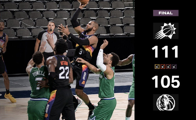 24直播网1月31日讯 独行侠今日坐镇主场迎来太阳的挑战,独行侠近期状态糟糕遭遇4连败,而太阳太阳则在上一场击败勇士结束3连败,不过球队核心布克因伤继续缺席。上半场的比赛双方激战难分高下,次节独行侠依靠着连续冲击篮下的进攻一度拉开比分,但最后时刻太阳迅速找到感觉并回敬11-3的攻势追平比分结束上半场。下半场之争东契奇开局突然爆发独砍11分,独行侠凭借一波15-2的最多取得15分的领先,但后半节局面急转直下突然哑火,这也给了太阳替补阵容追分的机会,末节初太阳再送8-0的攻势扭转局势,随后的拉锯战里保罗展现关键险胜的作用,他在最后时刻送出8分2次助攻,太阳最后时刻送出15-3的攻势奠定胜局。最终,太阳客场击败独行侠,并送独行侠5连败。