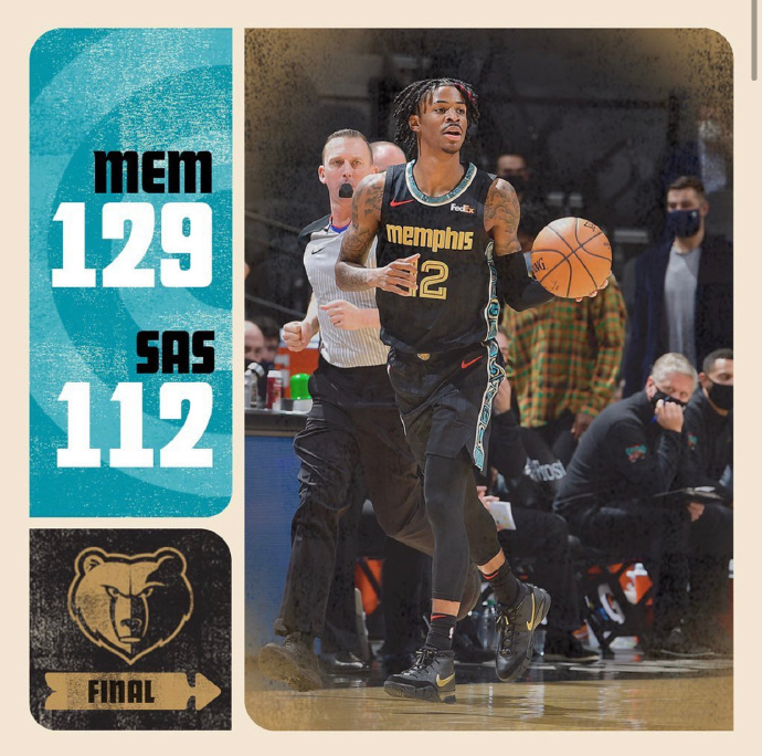 24直播网1月31日讯 NBA常规赛迎来西南区内战,近来攀升至西部第四的马刺迎战灰熊,后者在多场比赛延期后迎来近两周首战,首节一上来两队外线火热对飚,莫兰特极限拉杆打成2+1,首节结束后灰熊领先8分,次节回来后双方你来我往陷入缠斗,末段灰熊多点开花再次占据优势,半场战罢,灰熊继续领先7分。易边再战后莫兰特火力全开,本节他率队守住优势,三节结束后灰熊依然领先10分,末节决战,马刺追分乏力,最终灰熊129-112大胜马刺。