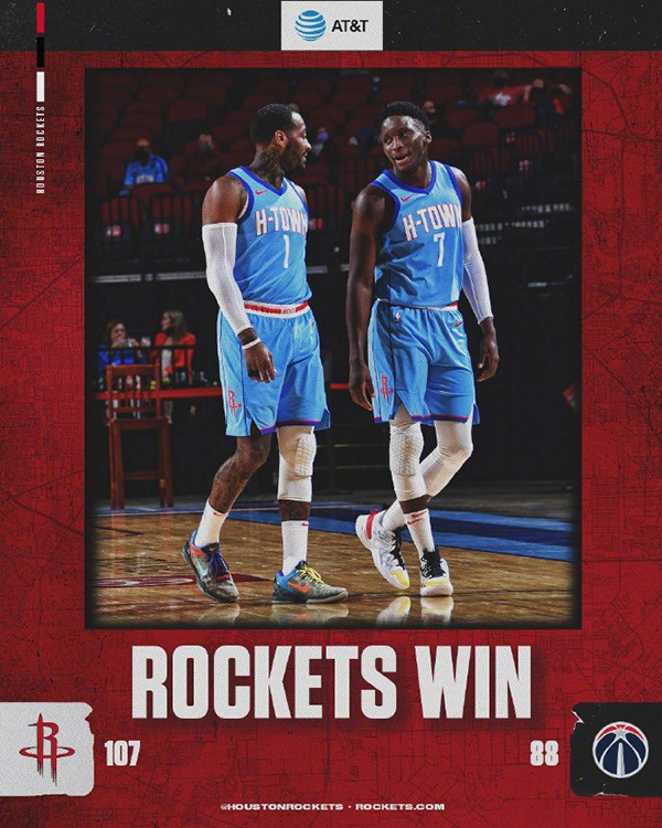 24直播网1月27日讯 NBA常规赛火箭主场对阵奇才,火箭近来状态稳定取得2连胜。开场后比尔和威少帮助奇才取得领先,沃尔凭借个人能力为火箭紧追不舍,第二节上来戈登为火箭吹起反击的号角,火箭一鼓作气完成反超,不过奇才也是多次尝试缩小分差,上半场过后,火箭56-52领先奇才。下半场回来两队手感不佳频频打铁,比尔带领奇才一度完成反超,但是戈登及时站出来帮助火箭重新获得优势,第四节后半段火箭打出一波高潮锁定胜局,最终火箭107-88击败奇才取得3连胜。