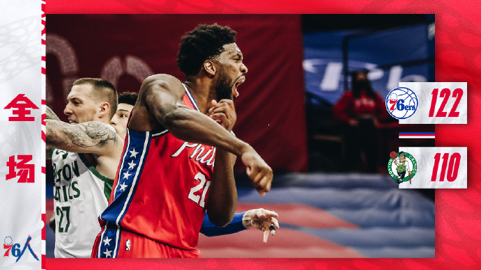 76人(10-5):哈里斯23分8板,恩比德38分11板3助,库里15分,西蒙斯15分3板11助,塞布尔9分4板,霍华德3分12板2帽,米尔顿6分,科克马兹6分。