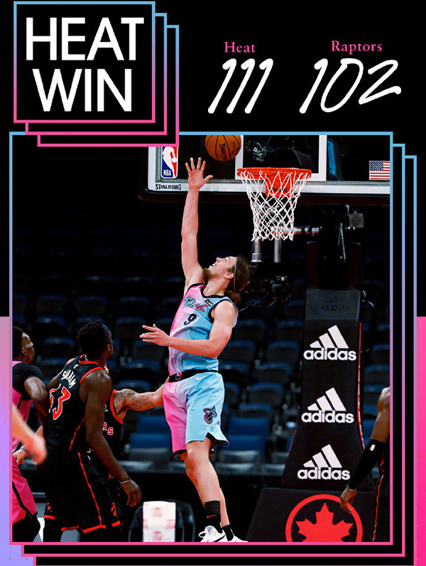 24直播网1月21日讯 猛龙坐镇主场迎战热火,此役巴特勒、希罗等继续缺阵。首节邓肯-罗宾逊连中三分,帮助热火取得领先。但猛龙在次节找到外线手感给予回敬,在半场结束以58-56成功反超比分。易边再战,纳恩在第三节里突外投连续砍分,率领热火重夺领先。而猛龙在末节未能掀起追分攻势,反而陷入长达5分钟的得分荒,热火捉住机会进一步拉开比分。最终,6人得分上双的热火在客场以111-102击败猛龙,取得2连胜,同时终结了猛龙的3连胜。