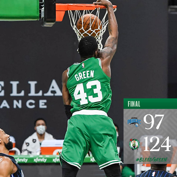 24直播网1月16日讯 NBA常规赛,凯尔特人今日迎战魔术,前者近来一波四连胜升至东部榜首的位置,而后者则是遭遇三连败排名东部第五,本场塔图姆缺战。比赛上来凯尔特人就率先进入状态取得领先,尽管塔图姆缺战,但布朗和普理查德表现不俗,半场结束时场上分差为12分。易边再战,凯尔特人完全占据场上主动,分差也突破了二十分,比赛早早就失去悬念,最终凯尔特人大胜魔术,迎来五连胜。
