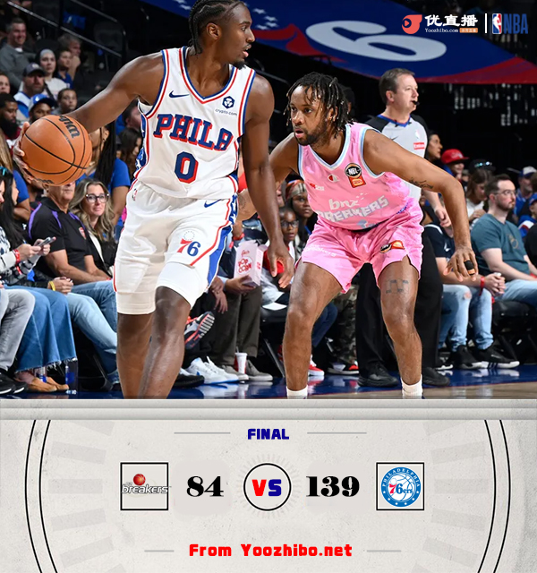 24直播网10月8日讯 NBA季前赛,76人今日迎战新西兰破坏者,前者是首次亮相,后者上场比赛则是输给爵士,此役恩比德和乔治缺战。比赛上来,76人就完全占据了场上的主动权,他们在4分钟的时间里打出13-1的完美开局,而新西兰破坏者仅依靠罚球拿到1分,首节结束分差就达到了21分,次节新西兰破坏者依旧无法阻挡76人的攻势,后者连续两节单节得分突破40分,半场结束时76人领先37分;下半场回来,76人开始撤下主力,不过新西兰破坏者依旧无法迫近比分,分差在末节已经超过了50分,比赛早已失去悬念,最终76人大胜新西兰破坏者迎来开门红。