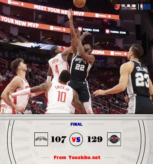 24直播网10月18日讯 NBA季前赛,火箭主场迎战马刺,本场比赛文班亚马和保罗缺阵。比赛开始,双方都迅速进入状态并展开拉锯战,布兰纳姆状态不错,卡斯尔上来也很活跃;阿门接连送暴扣,火箭多点开花,首节双方打成31平,次节申京联手小史密斯接连攻击内线帮助火箭建立主动权,随后火箭接连外线发炮一波19-0超级攻击波拉开20分以上领先。下半场,巴恩斯里突外投连砍8分带领马刺缩小分差,但杰伦-格林外线手感火热,带领火箭接连三分回应重新拉开20分以上领先,末节申京接连内线强打2+1助队保持20分以上领先,随后双方深度轮换练兵,最终火箭129-107轻取马刺。