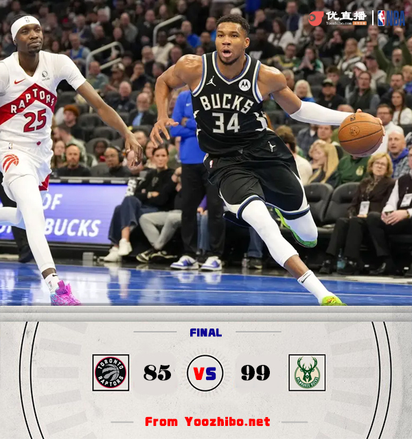 24直播网11月13日讯 NBA杯东部B组小组赛,雄鹿主场迎战猛龙,此前对阵凯尔特人时被打到头部的利拉德,此役进入脑震荡保护协议缺阵。比赛开打后雄鹿内线率先开张,洛佩斯连投带罚不断取分,帮助雄鹿开局占优,迪克里突外投给予回应,但雄鹿外线多点开花,首节结束时雄鹿领先5分,次节回来,迪克火力不减连造杀伤单节贡献14分,但无奈猛龙其他球员状态低迷,雄鹿稳扎稳打牢牢占优,半场战罢,雄鹿将优势扩大到11分。易边再战后猛龙下起三分雨,一波11-0后抹平分差,雄鹿外线及时复苏稳住局势,末段雄鹿连续杀伤内线,三节结束后雄鹿依然领先14分,末节上来,雄鹿延续火力将分差拉开到20分,猛龙进攻乏力翻盘无望,最终雄鹿99-85力克对手。