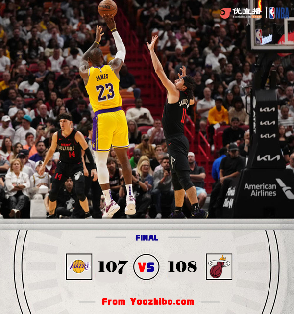 24直播网11月7日讯 NBA常规赛,热火主场迎战湖人,热火本赛季开赛状态一般,目前2胜4负,而湖人则是由于伤病等原因拿到3胜3负的战绩。比赛开始,双方外线手感都不错展开对飚,阿德巴约成为热火主力得分点,而湖人得分点更多,连续反击逐渐取得领先,但热火以邓罗为首的替补接连发挥能给出回应,首节双方打平。次节詹姆斯接连杀篮下撑起球队进攻,双方展开拉锯战,热火全民皆兵建立领先,里夫斯也能送出补扣回应,半场热火领先3分。下半场,双方继续展开拉锯战,比分持续胶着,阿德巴约有攻有传联手巴特勒一波10-0建立主动权,三节结束热火领先11分,末节詹姆斯再送暴扣,湖人7-2迅速缩近比分,但哈克斯接连篮下打成再次稳住局势,拉塞尔抱怨裁判连续吃T直接被驱逐,伍德里突外投止血,但热火还是依靠硬解给出回应重新领先到双位数,伍德三分加詹姆斯强打2+1再次咬到1分,雷迪什关键三分不进,最终湖人惜败热火。