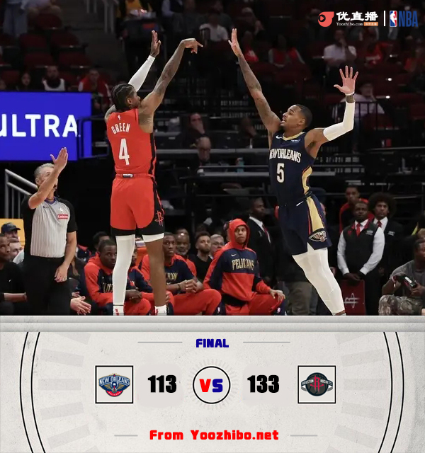 24直播网讯 北京时间12月20日讯 NBA常规赛,火箭主场迎战鹈鹕,火箭目前17胜9负排在西部第3位,鹈鹕4连败后5胜22负西部垫底,本场比赛锡安和英格拉姆继续缺阵。比赛开始,火箭多点开花上来就发力,外线接连三分打出21-3超级攻击波一举奠定领先,除谢泼德外火箭首节出场球员皆有得分,火箭首节领先14分,次节双方展开对攻战,墨菲和穆雷有攻有传带队追分,但狄龙连中4记三分半场轰下20分给出回应,次节双方打成27平。下半场,杰伦-格林开始发力,接连冲击内线得分迅速上双,火箭顺势拉开20分以上领先,赫伯特-琼斯三分止血,随后杰伦-格林继续冲筐单节砍22分,三节火箭领先到20分,末节麦科勒姆接连造杀伤追分,但杰伦-格林再送暴扣回应,火箭牢牢掌握住十几分领先,最终火箭133-113轻取鹈鹕,送对手5连败。