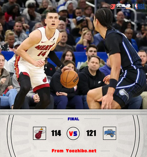 24直播网讯 北京时间12月22日讯 NBA常规赛,热火客场挑战魔术。巴特勒今天因病缺阵。热火13胜12负目前东部第六,魔术17胜12负暂列东部第四,但近期已遭遇3连败。上半场,魔术率先发力,高效输出取得领先,希罗得分助攻一肩挑带队反超,大瓦格纳受伤,热火持续发力取得两位数优势,小温德尔-卡特不满判罚连吃2T被驱逐,双方罚球不断,热火轻松将分差拉开到20分,半场战罢热火76-56领先魔术。易边再战,魔术3分钟轰出14-0迫近比分,热火内外开花稳住局势,末节魔术大举反击再度打出15-1的进攻高潮,热火全员哑火,魔术持续发力反超比分并杀死比赛,最终,魔术121-114逆转25分的分差击败热火。